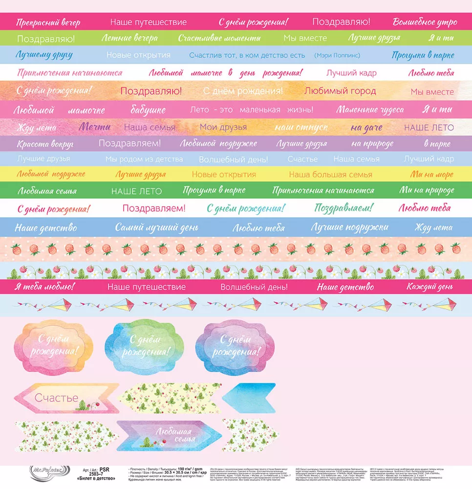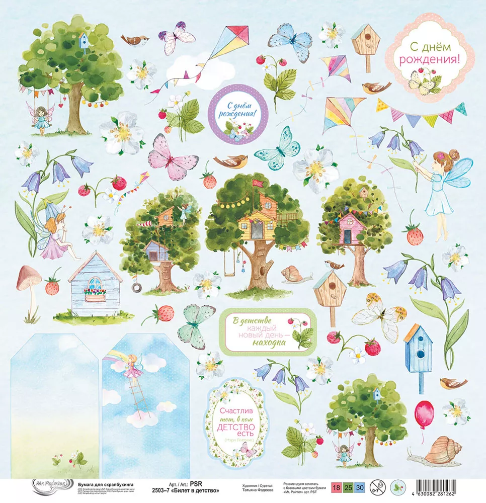 Создавайте уникальные истории с Бумага 30х30 см "Билет в детство 7. Для вырезания" (Mr.Painter). Яркие цвета, интересные узоры и различные текстуры — все, что нужно для ваших творческих экспериментов.