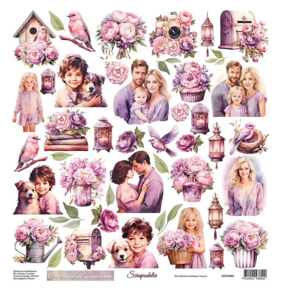 Главная Бумага в Екатеринбурге ScrapoDelie в Екатеринбурге Бумага 30х30 см "Счастье. Элементы" (Scrapodelie)