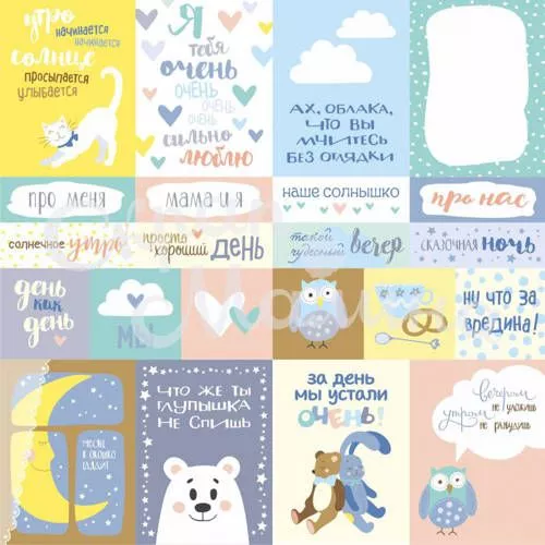 Создавайте уникальные истории с Бумага "Карточки. Наши песенки" (Скрап Малина). Яркие цвета, интересные узоры и различные текстуры — все, что нужно для ваших творческих экспериментов.