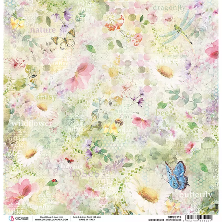 Создавайте уникальные истории с Бумага "Microcosmos" (Ciao bella). Яркие цвета, интересные узоры и различные текстуры — все, что нужно для ваших творческих экспериментов.