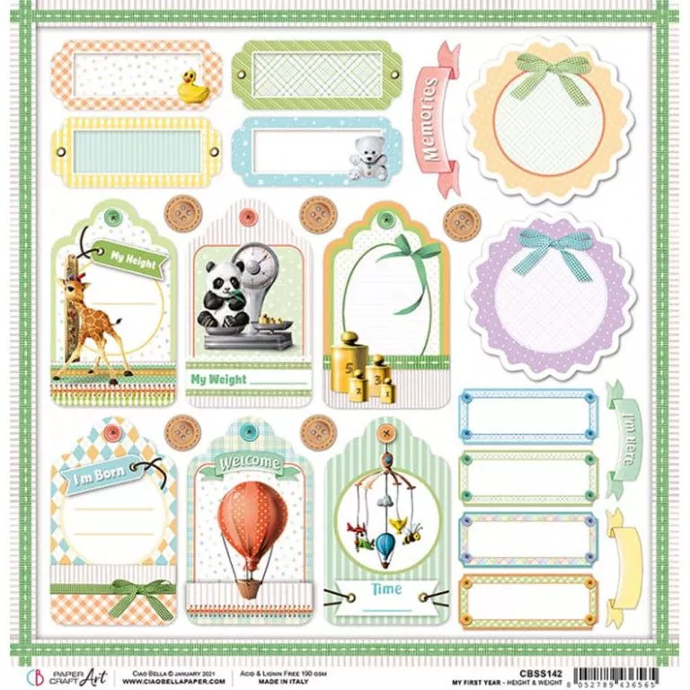 Создавайте уникальные истории с Бумага "My First Year. Height & Weight" (Ciao bella). Яркие цвета, интересные узоры и различные текстуры — все, что нужно для ваших творческих экспериментов.