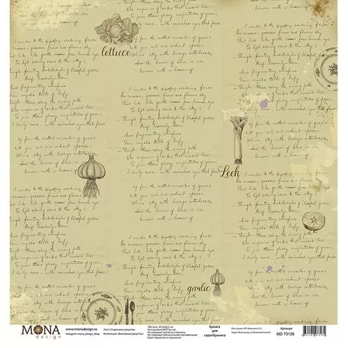 Бумага "Винтажные рецепты. Старинные рецепты" (MonaDesign)