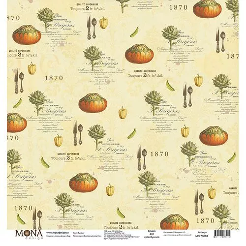Бумага "Винтажные рецепты. Тыквы" (MonaDesign)