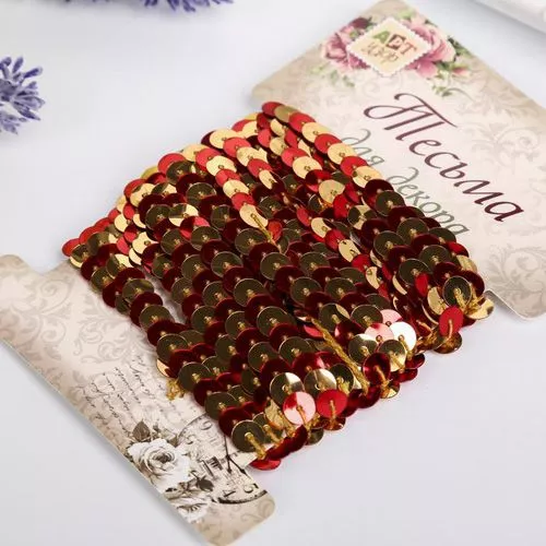 Лента из пайеток "Золотая и красная", ширина 0,6 см, длина 3 м (АртУзор)