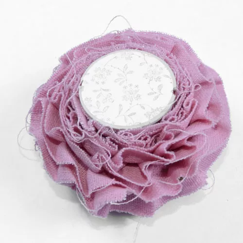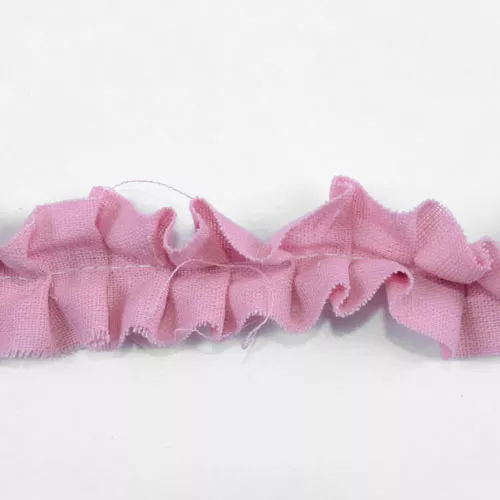 Хлопчатобумажная плиссированная (в складочку) лента с необработанным краем на деревянной катушке, скреплена бронзовой булавкой. Ширина 3 см, длина около 60 см