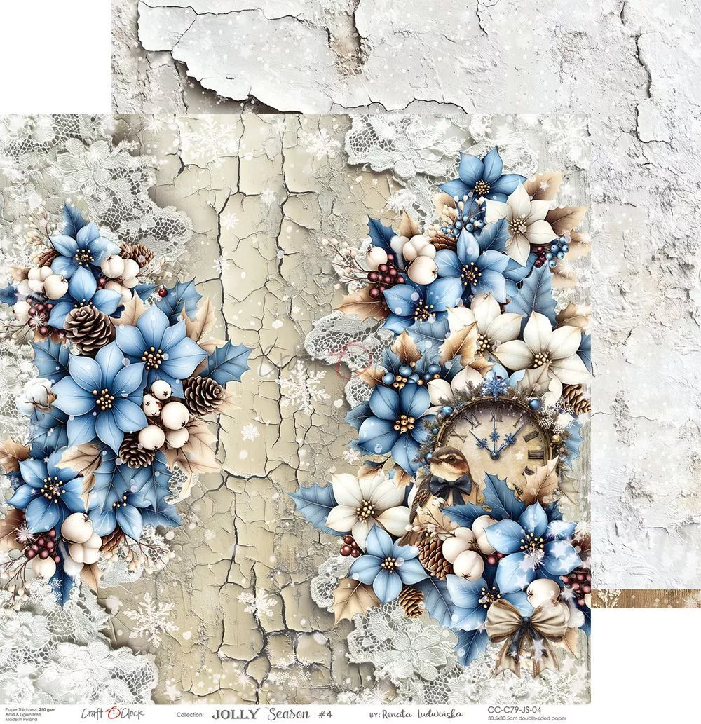 В наборе 6 двусторонних листов разного дизайна. Плотность 250 гр/м2. Приятным бонусом станет обратная сторона обложки, которую также можно использовать в работе. Сказочная Рождественская коллекция, укутанная в ледяные шали, поможет создать вам настоящие морозные шедевры