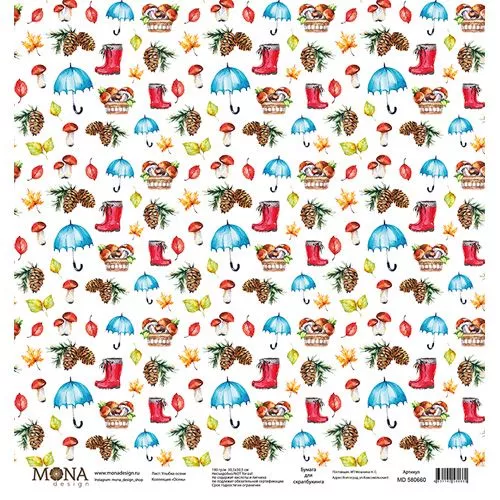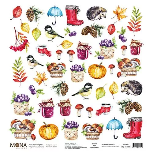 Набор бумаги 30х30 см "Осень", 12 листов (MonaDesign)