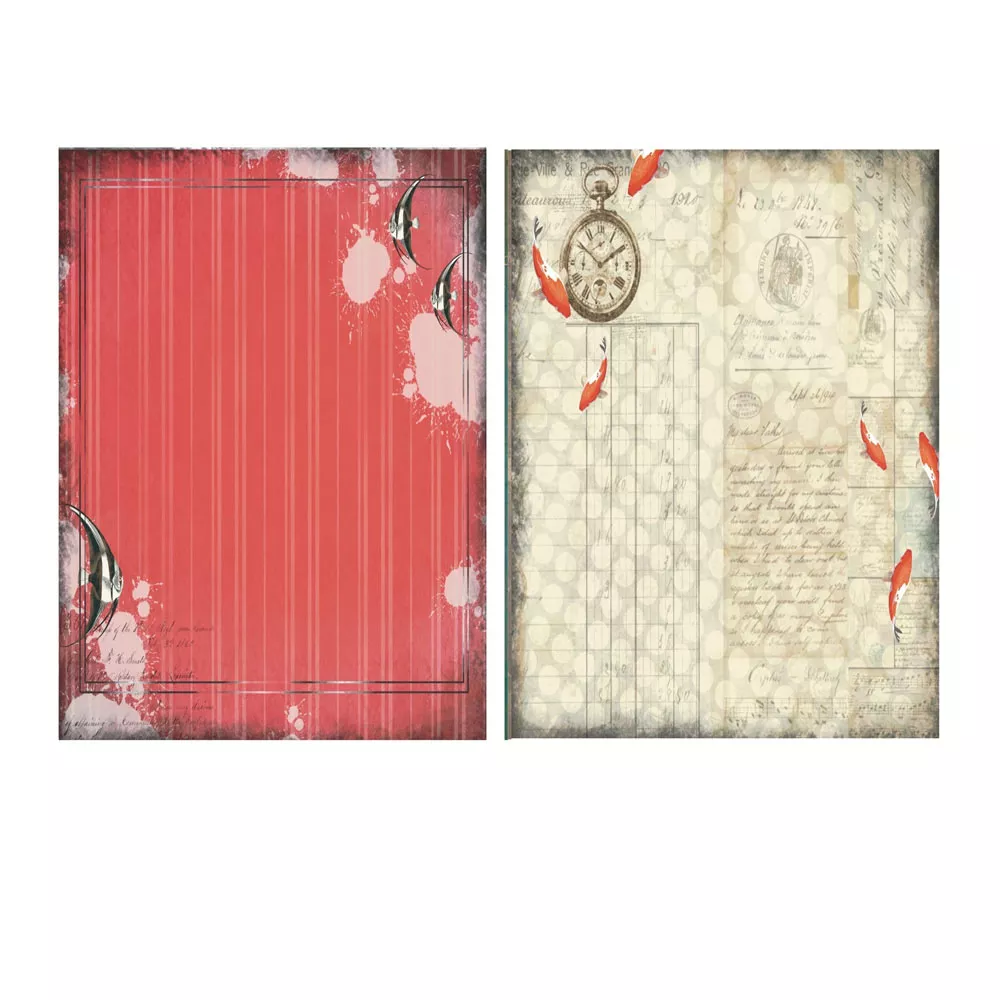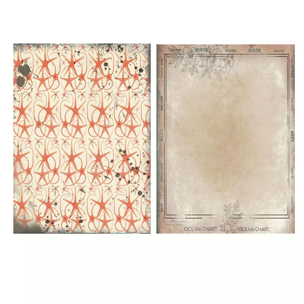 В наборе 6 двусторонних листов разного дизайна и 2 односторонних листа с картинками для вырезания. Плотность 300 гр/м2. Приятным бонусом станет обратная сторона обложки с карточками для вырезания. Бумага архивного качества. Печать цифровая. Отпечатано на дизайнерской бумаге с текстурой микровельвет Nettuno. Размер листов 19,5х27,5 см. Солнце, море и песок... Морская коллекция с прекрасными фоновыми принтами и картинками для вырезания