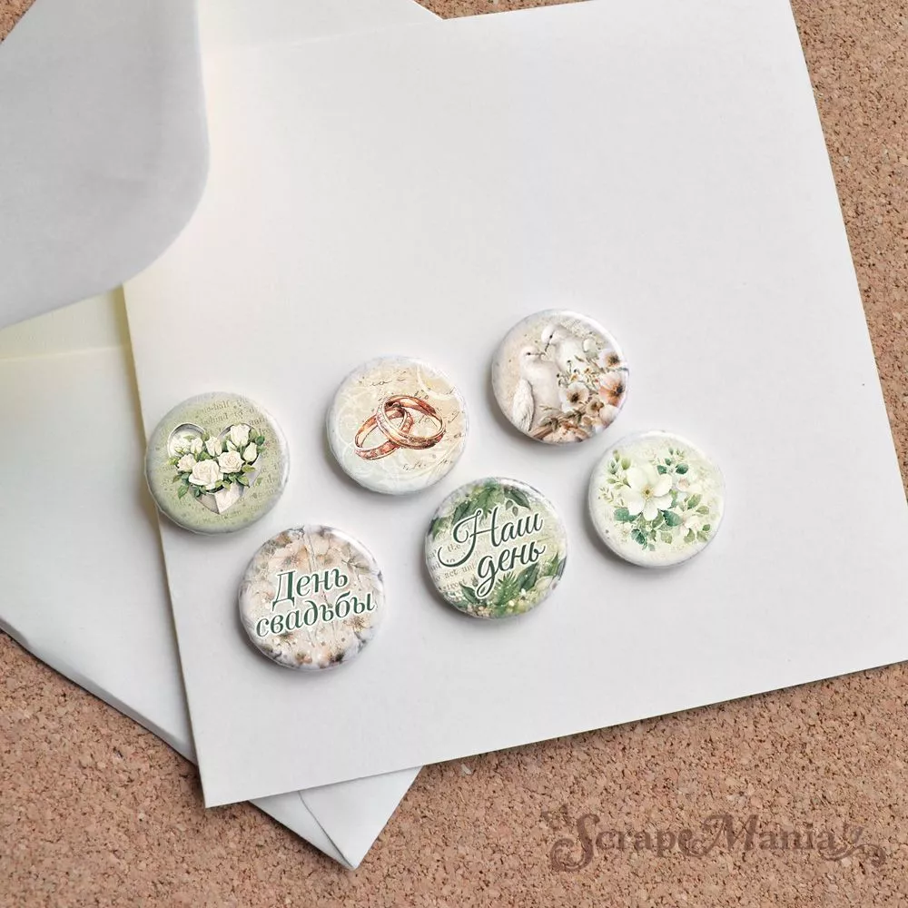 В наборе 6 глянцевых фишек, диаметр 2,5 см. Без клеевой основы. Уникальный дизайн, разработано специально для Вашего вдохновения