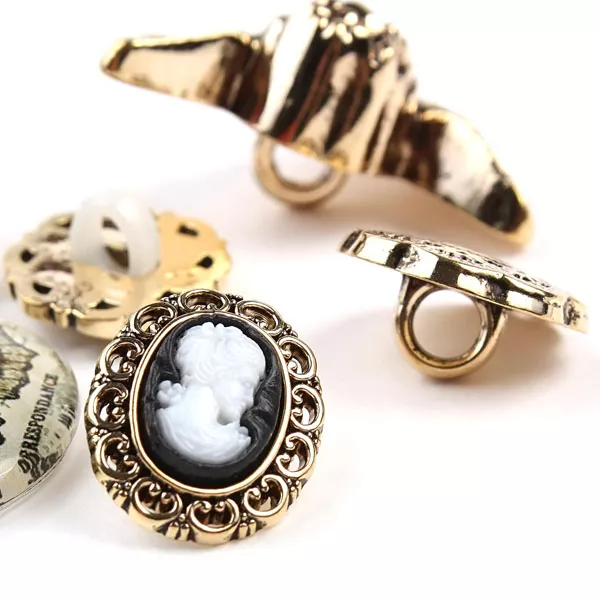 В наборе 6 пуговиц. Размер от 1,3 см до 2,5 см