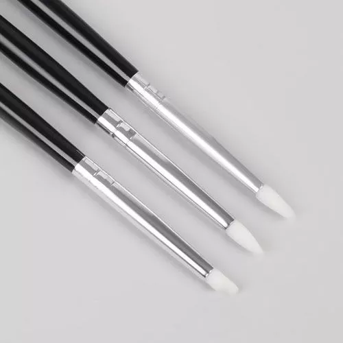 В наборе 3 резиновые кисти для клея с наконечниками различной формы: конус, стек и усеченный цилиндр. Длина резиновых наконечников 0,6 см, длина инструментов 18 см. Пригодятся в работе с пастой, пластилином или тканью. Удобно использовать как кисти для нанесения клея, обеспечивает равномерное покрытие. Резиновая кисточка для клея отлично справиться с подклеиванием труднодоступных мест и мелкими элементами