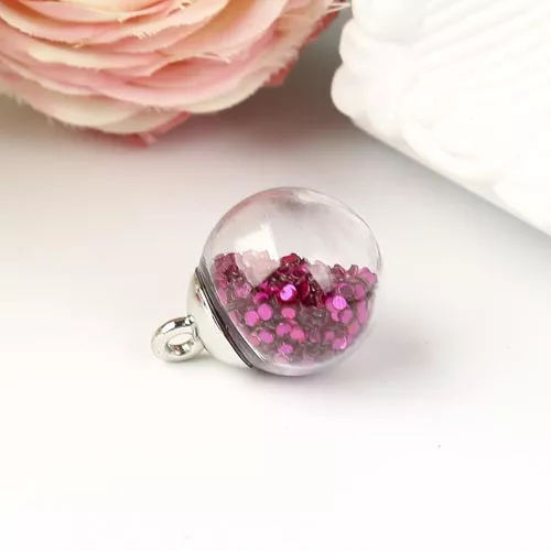 Набор стеклянных подвесок "Шар. Блестки фуксия" (АртУзор)