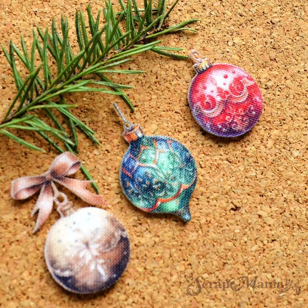 Набор тканевых высечек "Елочные шары", 33 шт (ScrapMania)