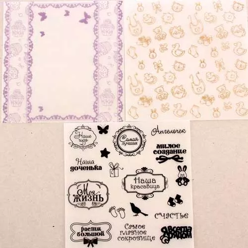 В наборе 3 листа кальки разного дизайна