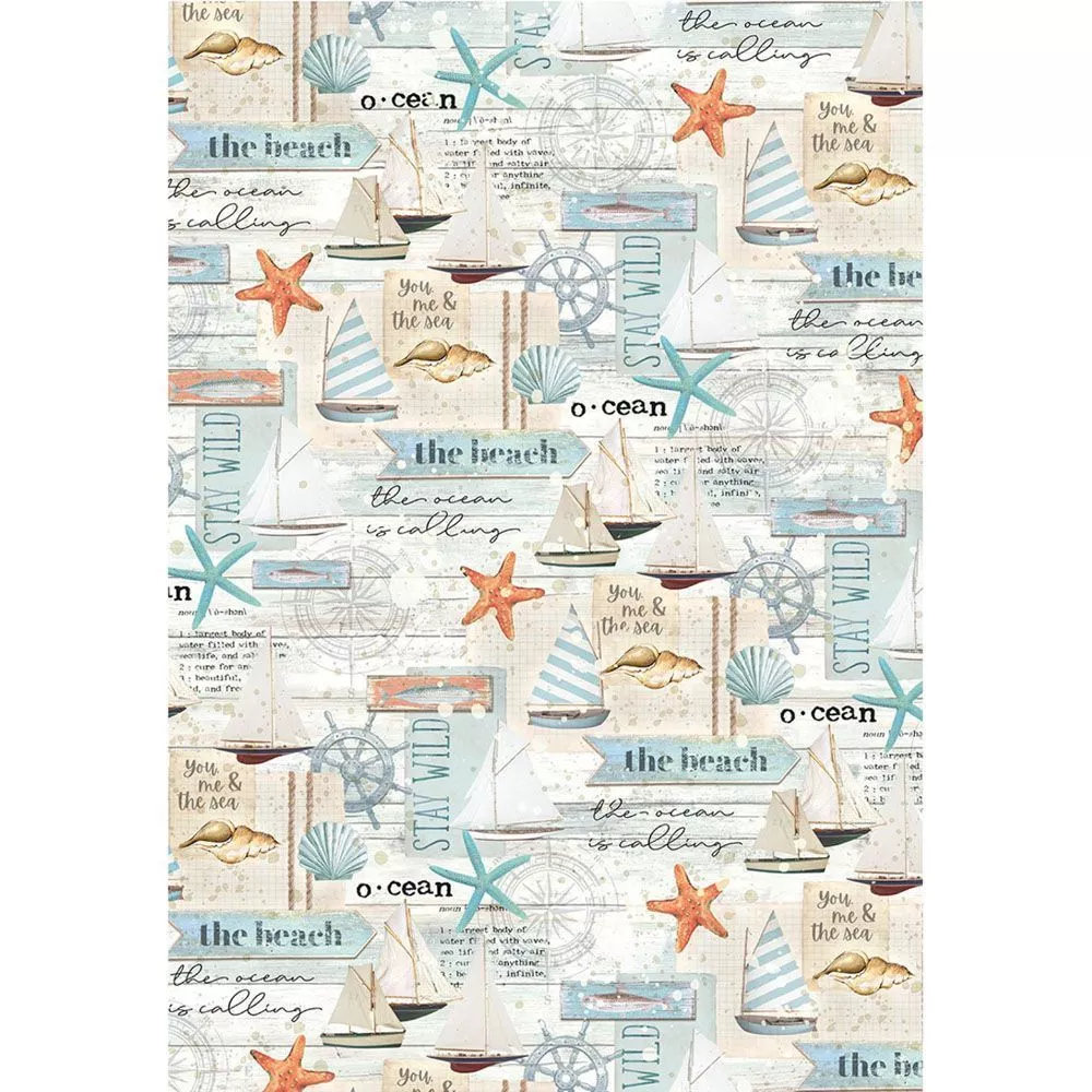 В наборе 5 листов веллума (кальки) с фоновыми принтами и 1 лист веллума однотонный белый. Плотность 92 гр/м2. Воздушное дополнение к основной коллекции идеально дополнит ваши морские мечты