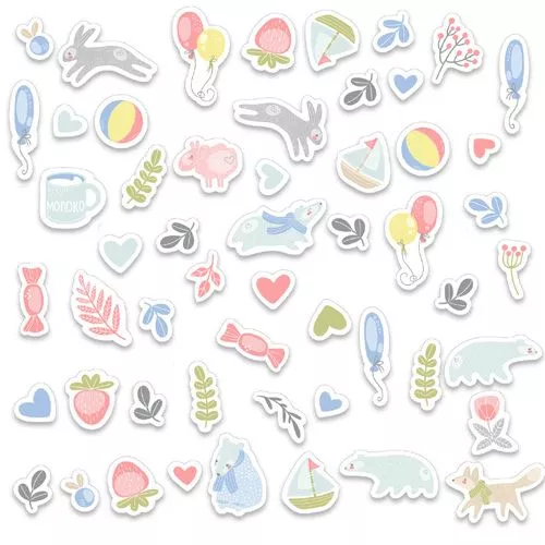 В наборе около 53 вырубок из плотной бумаги, средний размер 4х5,5 см, плотность 190 гр/м2
