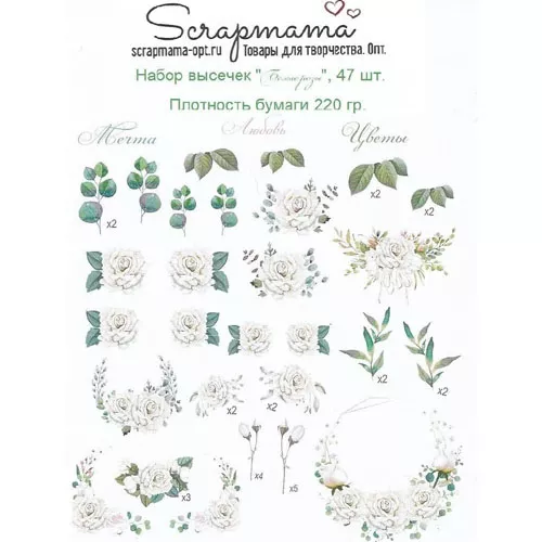 Набор высечек "Белые розы", 47 шт (Scrapmama)