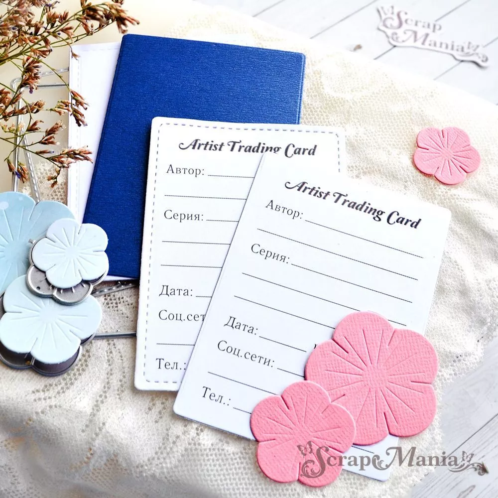 В наборе 2 ножа. Размер рамки 6,5х9 см, размер рамки со строчкой 6х8,5 см. Идеально подходит для вырубки карточек АТС из листа с картинками 10х30 см (арт 222639). Вырубку можно делать как с машинной строчкой, так и без неё. Приятным бонусом будут три дополнительных ножа в форме цветочков. Размеры 2,5 см, 3 см и 4,2 см.