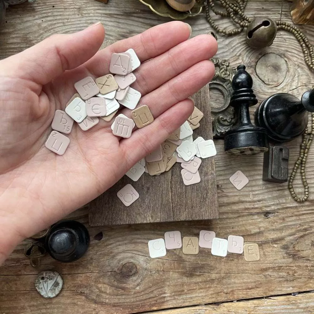 В наборе 2 пластины. Размер пластин 7,8х4 см и 6,5х7 см. Каждая пластина вырубает квадратики с буквами, размер квадратов 1,2х1,2 см