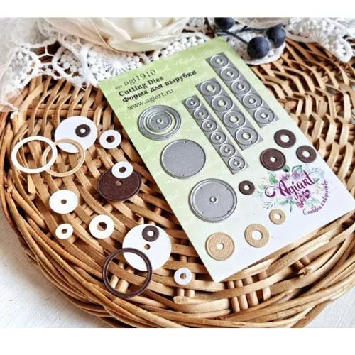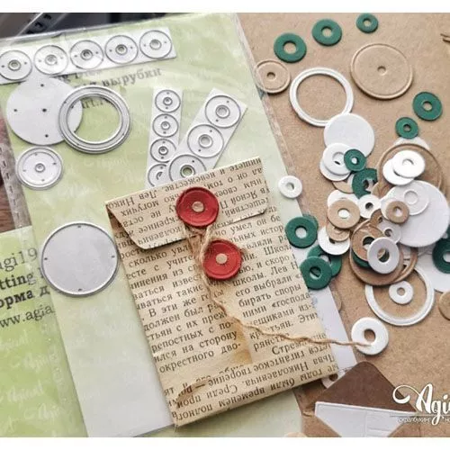 В наборе 5 ножей. Размер ножей 2,5х2,5 см и 1,5х1,5 см, размер пластин 5,6х1,5 см, 6х1 см и 6,5х1,4 см. Размеры кружков на пластинах 1,3 см, 1 см и 1,2 см