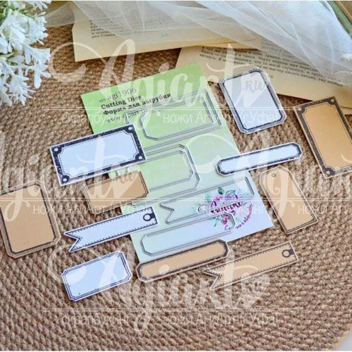 В наборе 6 ножей. Размер 6,2х3,4 см, 5,2х3,7 см, 4,9х2,4 см, 6,2х1,6 см, 4,3х2,3 см и 6,2х1,5 см. сочетаются со штампами "Картотека" (арт. 244639)