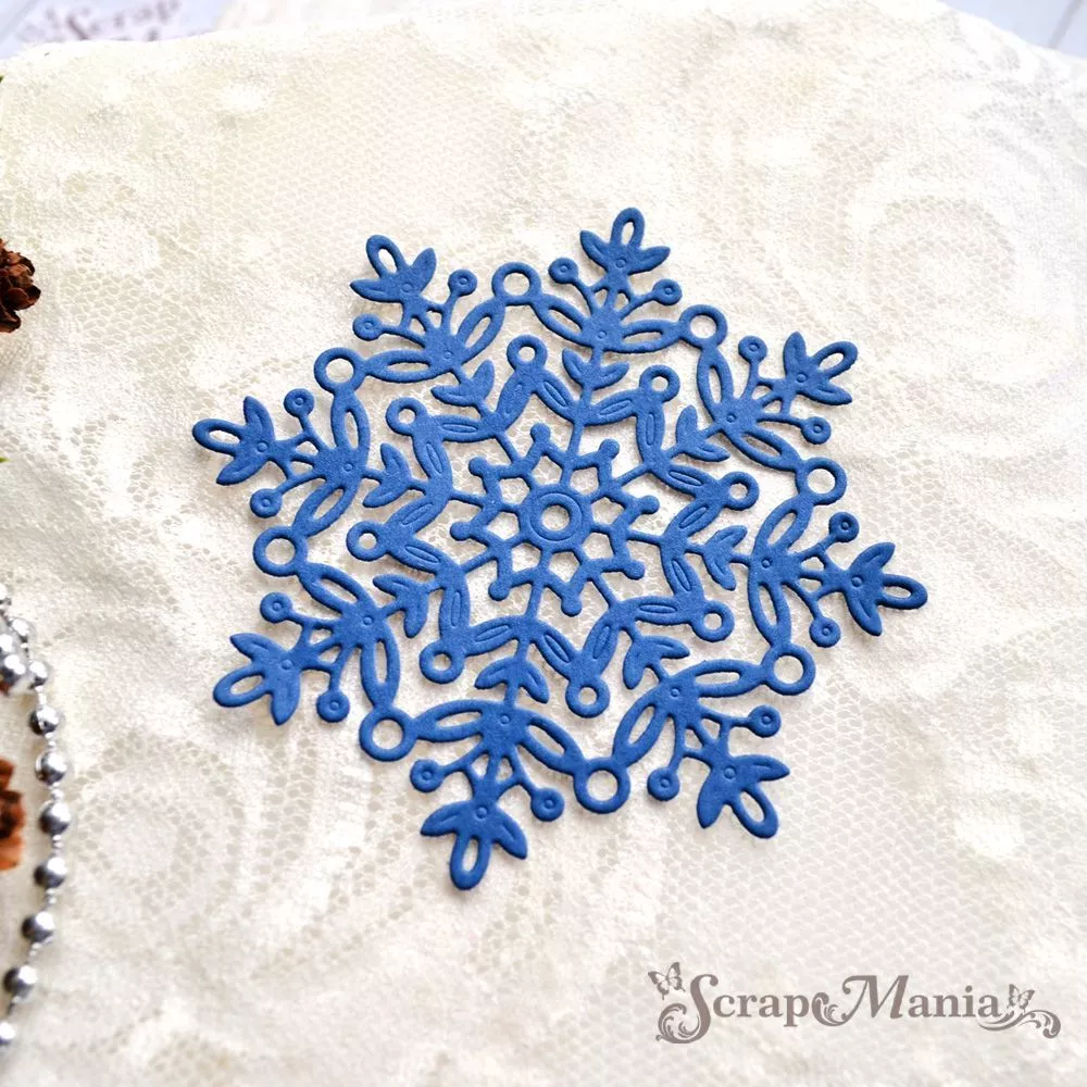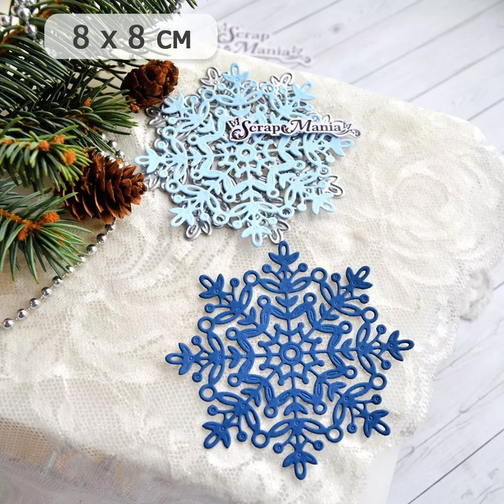 Размер 8х8 см. Нож делает красивое тиснение, что придает снежинке еще большую ажурность и сказочность. Вырубка прекрасно дополнит новогодние и зимние работы. Творите волшебство своими руками