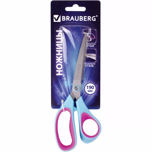 Остроконечные лезвия ножниц с двухсторонней заточкой остаются максимально острыми даже при интенсивной и длительной эксплуатации. Длина лезвий 8 см. Асимметричные эргономичные ручки выполнены из мягкого пластика с резиновыми вставками, что помогает обеспечить удобный захват и уменьшить нагрузку на руку при продолжительной работе. Размер ножниц 19х8 см