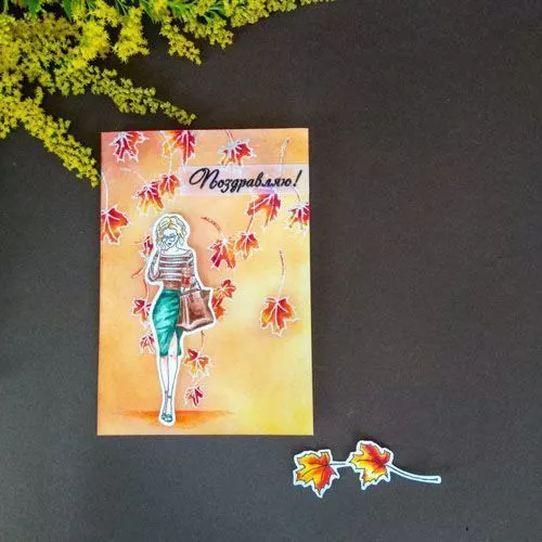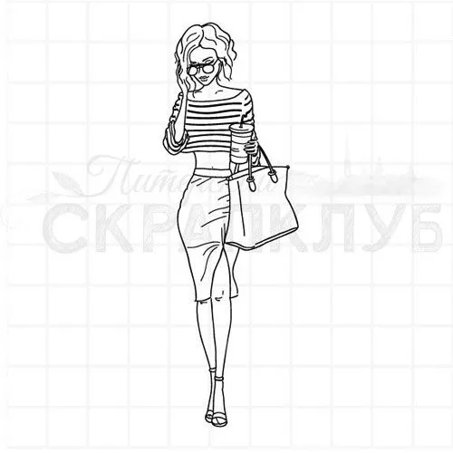 Штамп "Девушка с напитком", 3,4х10 см (Скрапклуб)