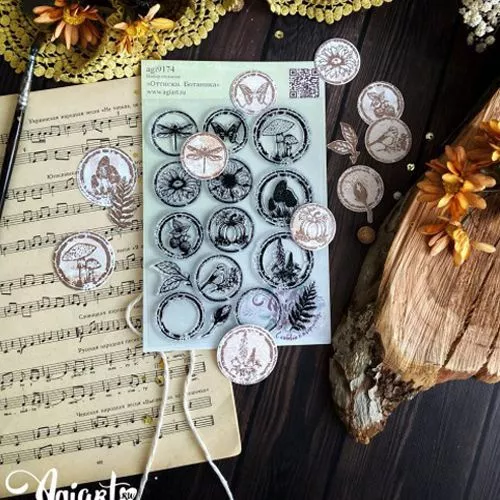 Штамп "Оттиски. Ботаника", 4,3х4,3 см (AgiArt)