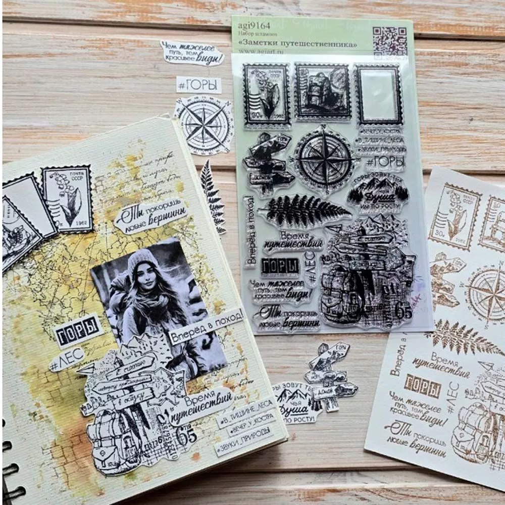 Главная Штампинг в Екатеринбурге Силиконовые штампы, Россия в Екатеринбурге Штамп "Заметки путешественника", 7,5х2,8 см (AgiArt)
