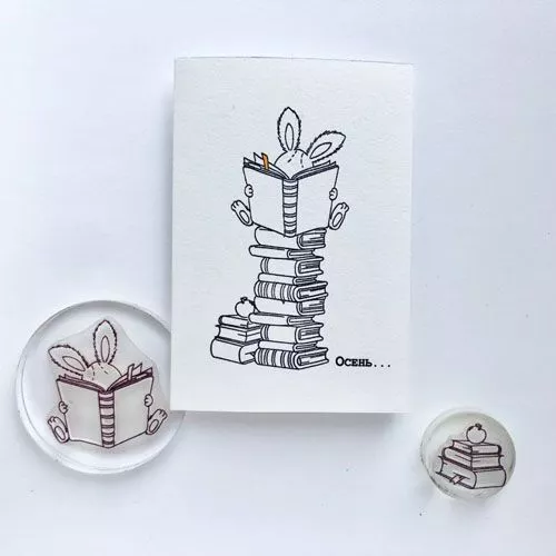 Штамп "Зайчик за книгой", 5,1х5,4 см (Скрапклуб)