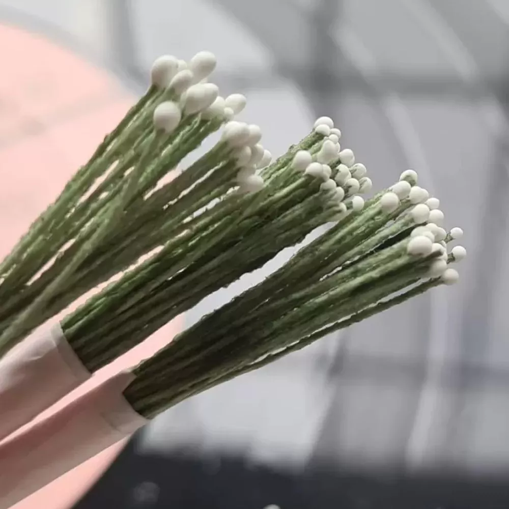 Тычинки "Мини. Белые на темно-зеленой нити", 25 шт (AgiArt)
