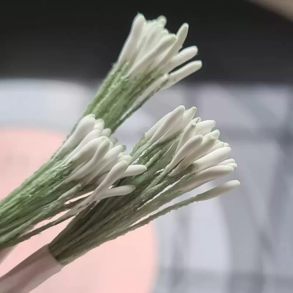Тычинки "Удлиненные. Белые на темно-зеленой нити", 25 шт (AgiArt)