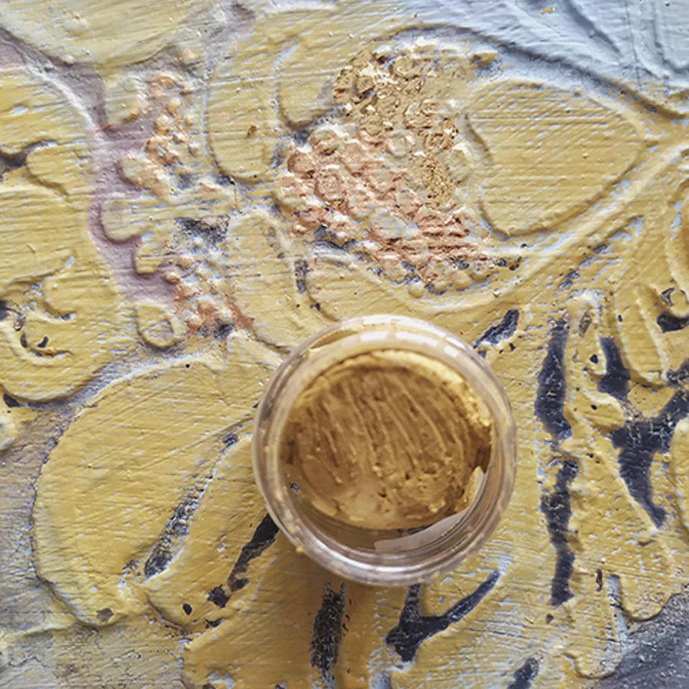 Художественные воски окрашивают поверхность в античные металлические оттенки. Отлично подходят для выделения отдельных фрагментов изделия, служат акцентным завершением облика предмета. Текстура восков мягкая, плотная. Воск хорошо держится на поверхности, не тускнеет, не смывается. Воск выполнен из натуральных компонентов, безопасен в использовании, приятно пахнет маслом апельсина. Перед использованием художественных восков не требуется специальная подготовка поверхности. Для наилучшего подчеркивания рельефа нанесение воска стоит производить на текстурную поверхность. Воски подходят для дерева, холста, ДВП, фанеры, керамической плитки и т.д. Нанесение воска производится путем использования сухой кисти, кусочка ткани или пальцами. Дополнительное финишное закрепление не требуется. Высыхает в течение 24 часов. Не боится замерзания!
