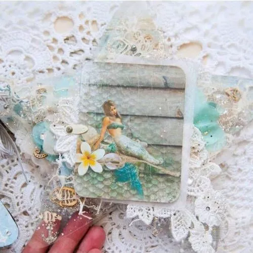 Состоит из 6 фигурных листов: 1 картонная обложка, 1 пластиковая обложка, 3 картонных страницы и 1 пластиковая страница. Плотность картона 1,5 мм. Имеется отверстие для кольца (кольцо в комплект не входит). Страницу из пластика можно декорировать алкогольными чернилами, акриловыми красками или бумажными украшениями. Получится воздушная и оригинальная страничка