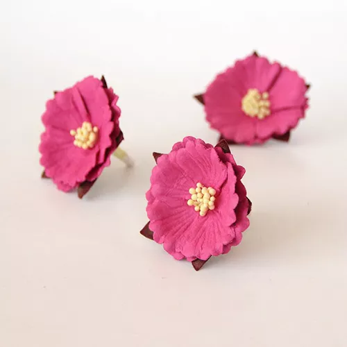 - Цветочный. Эти элементы могут быть бумажными, металлическими, пластиковыми, тканевыми, также для их создания используется фоамиран, фетр, самозатвердевающая глина.