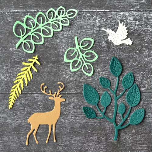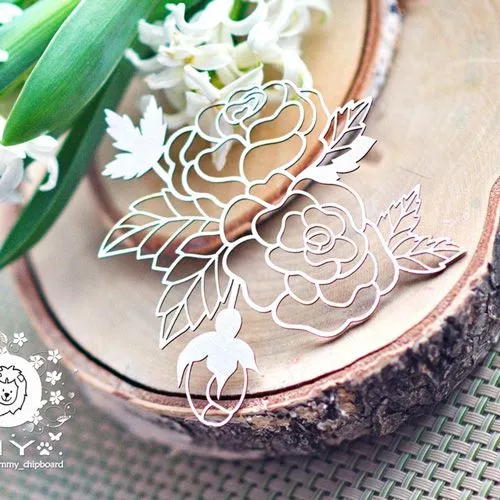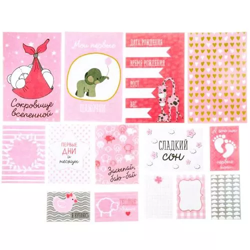 - Бумажный. Самые распространенные разновидности – наклейки, высечки, вырубка, натирки. К бумажному декору относятся и такие удобные в работе украшения, как оверлей, отштамповки, листы для вырезания с картинками. Пользуется популярностью и такой декор, как чипборд (изображение или надпись), который может быть цветным и неокрашенным.